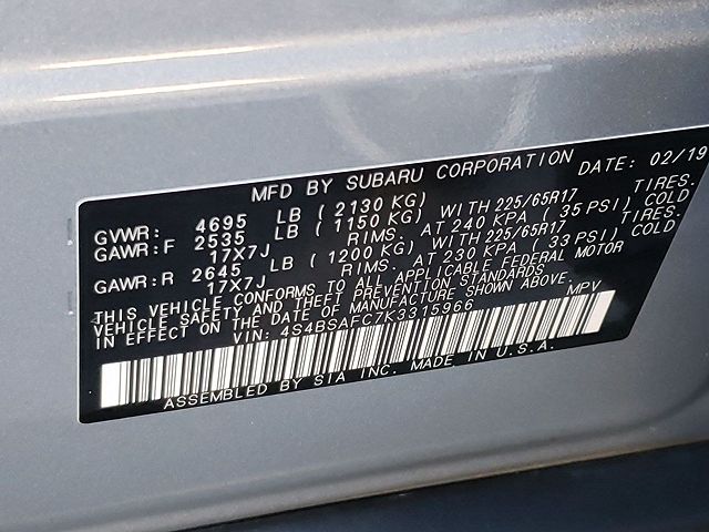 VIN: 4S4BSAFC7K3315966