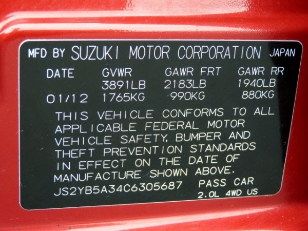 VIN: JS2YB5A34C6305687