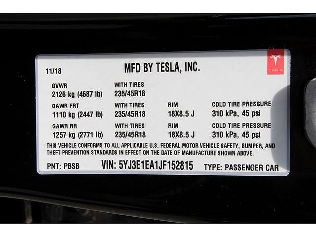VIN: 5YJ3E1EA1JF152815