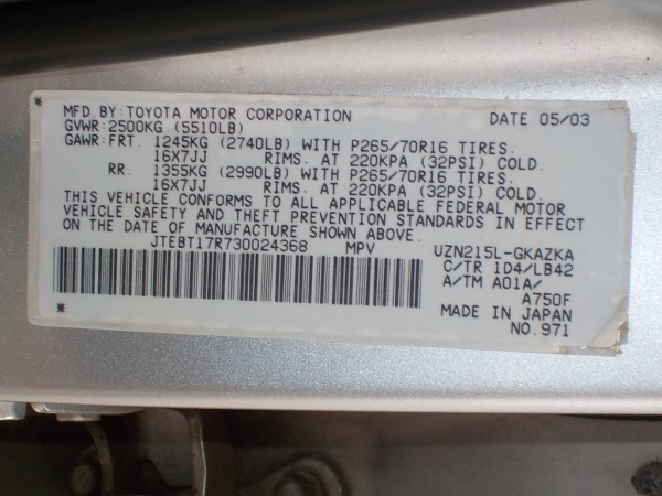 VIN: JTEBT17R730024368