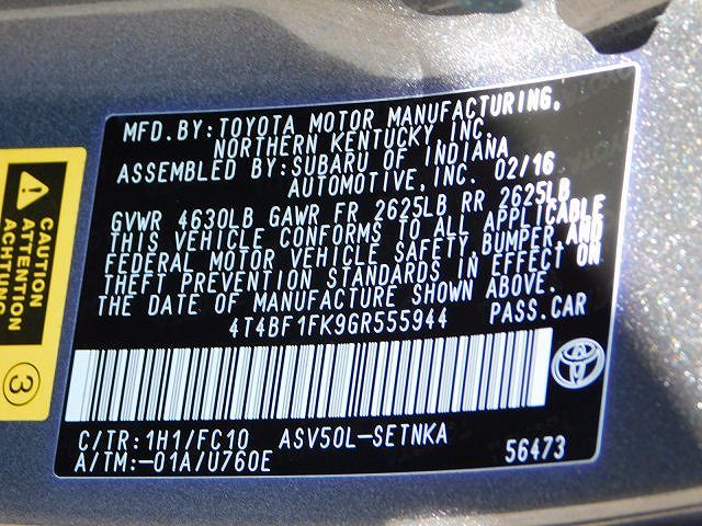 VIN: 4T4BF1FK9GR555944