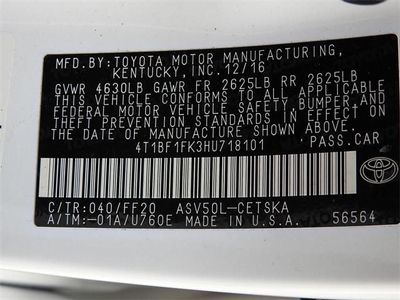 VIN: 4T1BF1FK3HU718101