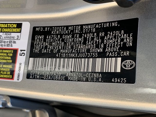 VIN: 4T1B11HKXJU073755