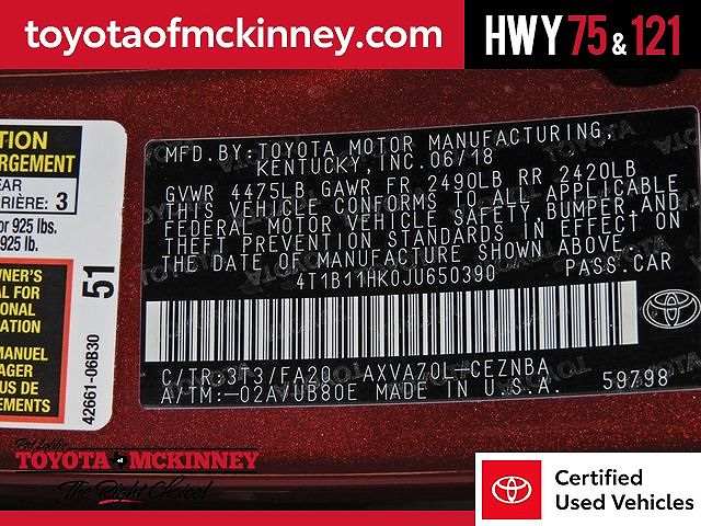 VIN: 4T1B11HK0JU650390