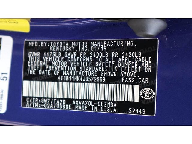 VIN: 4T1B11HK4JU572969