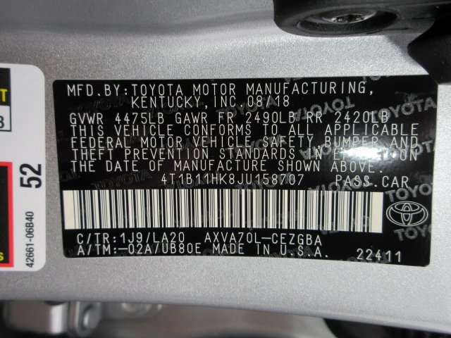 VIN: 4T1B11HK8JU158707