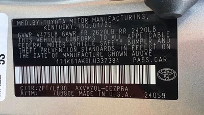 VIN: 4T1K61AK9LU337384