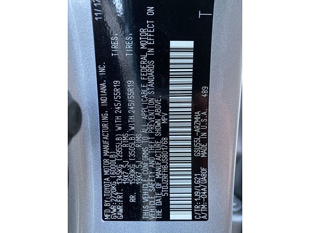VIN: 5TDJZRFH8JS801768