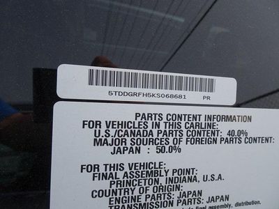 VIN: 5TDDGRFH5KS068681