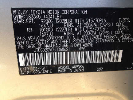 VIN: JTEGD29V050068621