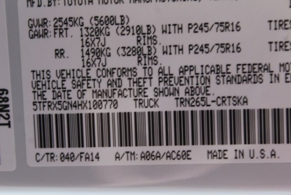 VIN: 5TFRX5GN4HX100770