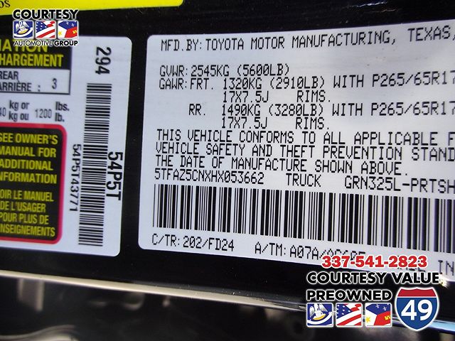 VIN: 5TFAZ5CNXHX053662
