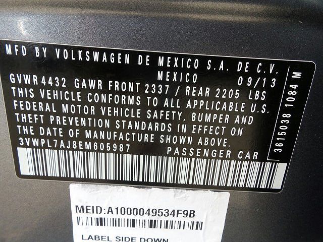 VIN: 3VWPL7AJ8EM605987